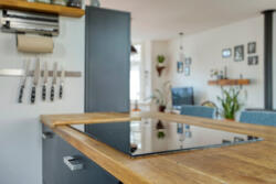 - Open keuken met moderne inductieplaat met geïntegreerde afzuiging