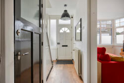 Via de hal met toilet, vernieuwde meterkast (2020, 3-fasen incl. krachtstroomgroep) en trapopgang bereikt u de woonkamer, keuken en het souterrain.