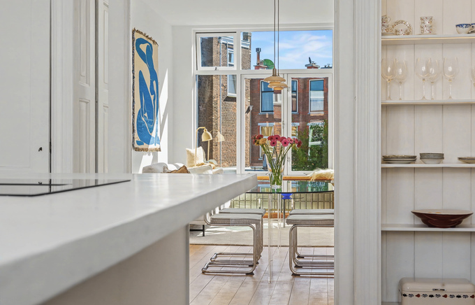 At the front, you will find the impressive, newly renovated open kitchen: a place to cook, entertain and gather. The concrete countertop, high-quality built-in appliances and minimalist finish create a sleek and luxurious appearance.