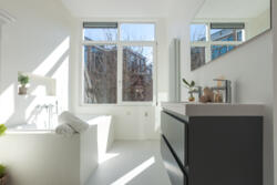 - Hoge plafonds (ca. 3.06 meter), akoestisch ontkoppeld en uitgevoerd met dubbele gipsplaten voor extra geluidsisolatie