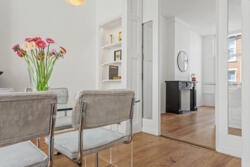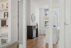 De royale woonkamer en suite vormt het hart van de woning en biedt een mooie balans tussen openheid en gezelligheid. Dankzij de ensuite deuren kun je de ruimtes naar wens verbinden of afsluiten. De akoestisch ontkoppelde plafonds zorgen voor een uitzonderlijk rustig wooncomfort – een zeldzaam pluspunt in stedelijk wonen.