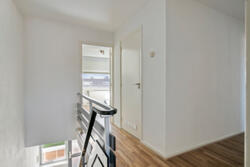 De overloop geeft toegang tot vier goed bemeten slaapkamers, ideaal voor slapen, werken of hobby’s.