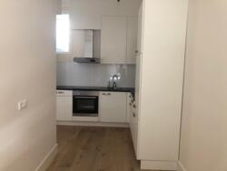 Binnen tref je een sfeervolle woonkamer met karaktervolle ensuite deuren, een moderne open keuken en een mooie houten vloer die door het hele appartement loopt. De slaapkamer ligt rustig aan de achterzijde en grenst aan de patio; daarnaast is er een tweede kamer die ideaal is als werk- of logeerkamer. De badkamer is compact maar fraai afgewerkt met een douche en wastafel, en het toilet is separaat.