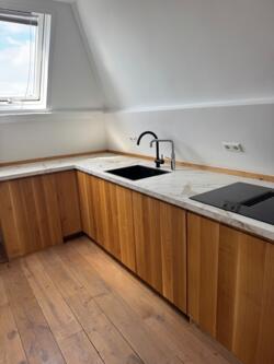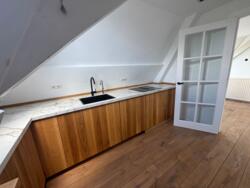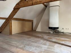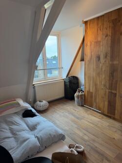Het appartement (ca. 60 m²) beslaat de derde en vierde etage (vliering). Via de eigen entree op de tweede verdieping betreedt u de woning. Een brede dakkapel op de overloop zorgt voor een stroom van natuurlijk licht. De slimme indeling met massief eiken schuifwanden maakt optimaal gebruik van de ruimte.