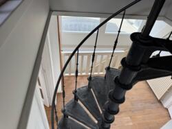 * De flexibele vliering: De elegante gietijzeren trap leidt u naar de hoge vliering. Deze lichte, intieme ruimte is perfect in te richten als gastenverblijf, werkkamer of lounge.
