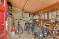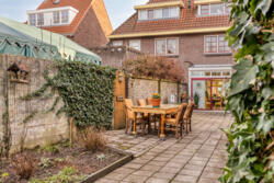 The garden features a spacious stone hobby and work area with an attic floor, equipped with gas, electricity, and water. There is also a lounge and outdoor kitchen counter, as well as a lockable bicycle shed, accessible from the side of the house and via a back entrance at the rear of the garden, leading to Emmastraat. The garden also has a groundwater pump, water taps, and various electrical outlets. There are 8 solar panels on the roof.