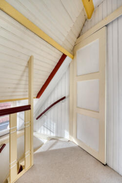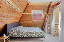 A fixed staircase leads to the spacious attic floor with two bedrooms. Both have a dormer window, which provides plenty of light and extra space.