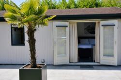 De ouderslaapkamer beschikt over airconditioning, openslaande deuren, een inbouwkast en een eigen wastafel. De tweede slaapkamer is ingericht met een vast stapelbed en een inbouwkast. Onder het huis bevindt zich een systeem voor mechanische ventilatie.