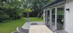 De tuin is volledig omheind en daarmee kind- en diervriendelijk ingericht.