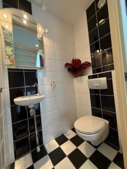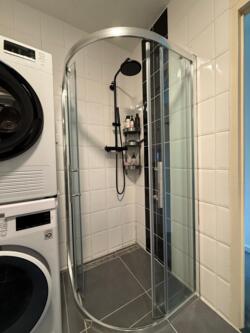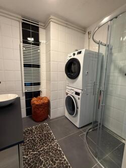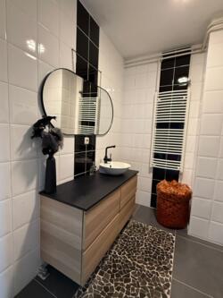 Badkamer voorzien van net wastafelmeubel uit 2022, vernieuwde tegelvloer uit 2022, designradiator, wasmachineaansluiting en mechanische ventilatie.