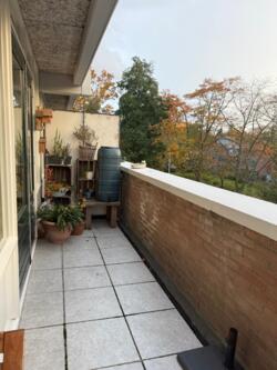 Het balkon is te betreden via de openslaande deuren. Je hebt hier vanaf begin van de middag zon tot laat in de avond.