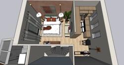De bovenste verdieping is een lichte master suite of studio met openslaande deuren naar het balkon. Hier heeft u een prachtig uitzicht over de Binnenveldse Hooilanden — een dagelijks contact met natuur, ruimte en rust.