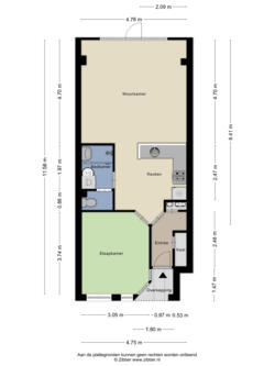 Je komt het appartement binnen via een portiek en een kleine hal.